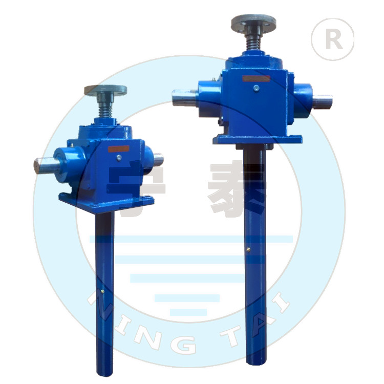 錐齒輪升降機 可廣泛用于機械、冶金、建筑、水利、化工、醫療、文化衛生等各個行業。如:機械加工上重壓緊固裝置升降臺、翻轉裝置及塑料加工機械等;安裝和維修用爬梯和工具升降架、機車維修升降臺位;軋機滾道間隙調整、棺材或板材送位置的調整;鑄造啟?;蚧炷聊猎煨?;冶煉方面用于調整電極、熱液體澆鑄;建筑方面用于移動設備和組合成品的模板,可升降的窗戶、墻壁、圍墻等;文化衛生方面可升降舞臺、調整游泳池池面高度、調整手術臺高度;水利方面用于水庫的閘門和保護板;科研方面用于不能用人力調整的運動等。特適用于大型的升降平臺。