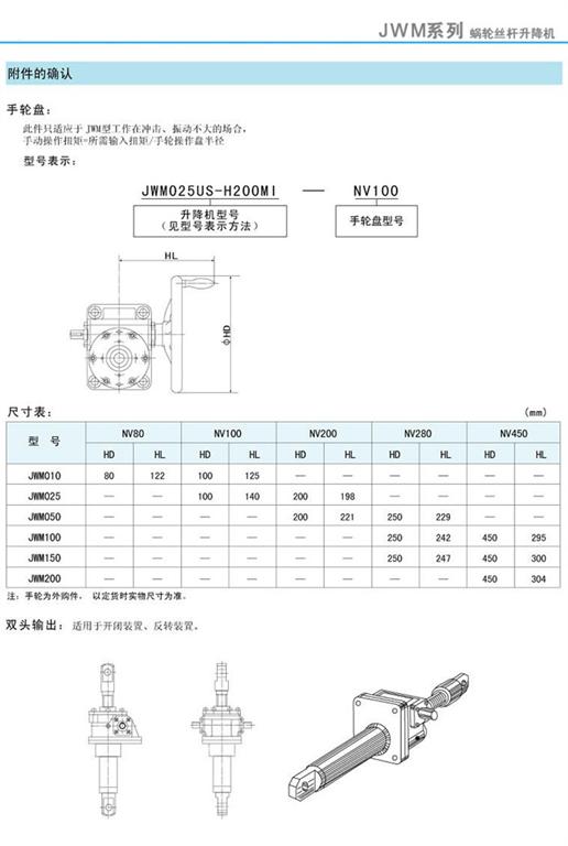 JWM絲桿升降機(jī)附件的確認(rèn)-手輪盤、尺寸表及雙頭輸出
