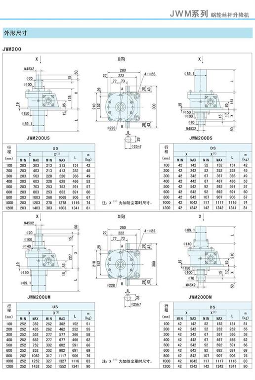 減速機|蝸輪絲桿升降機-JWM升降機200外形尺寸圖-海洋傳動