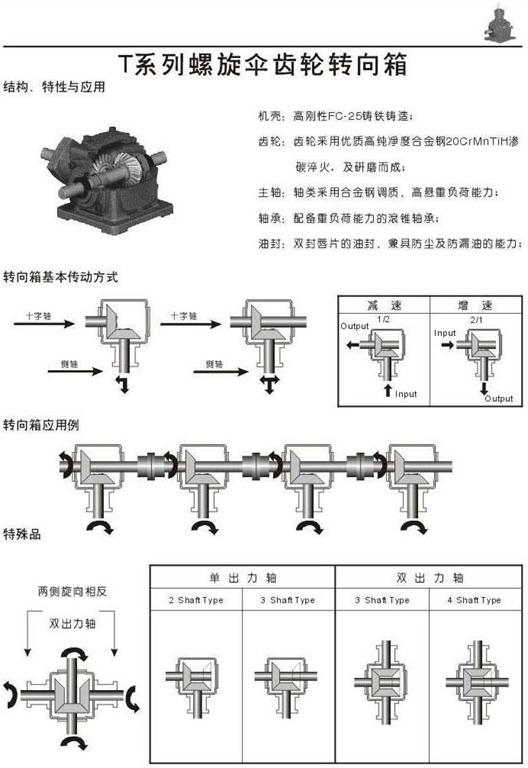 是通過螺旋傘齒輪實現的專向和減速的作用,這中