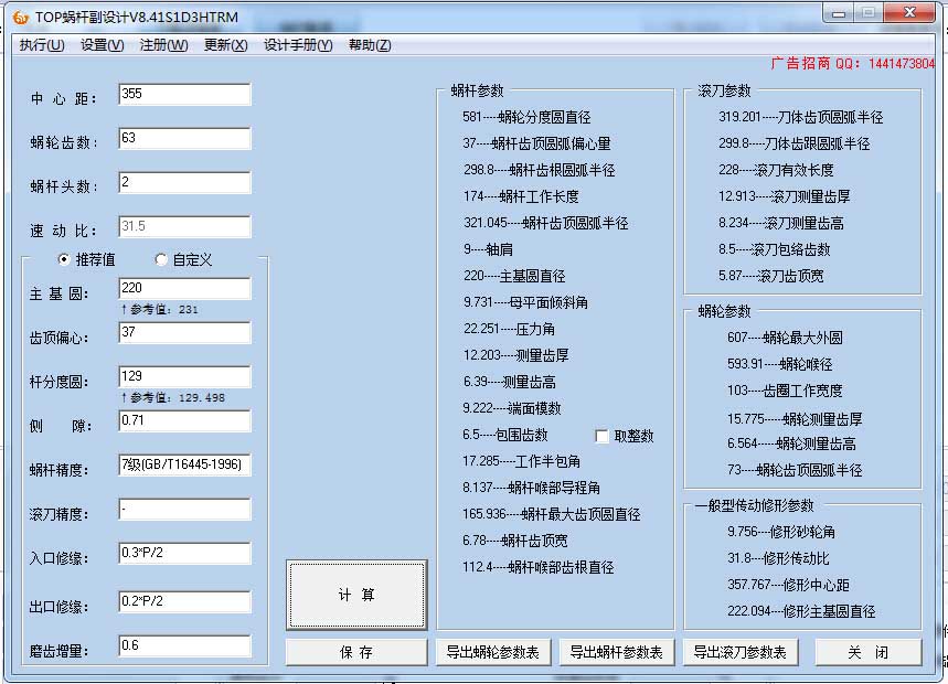 程序提供了一些常規計算參數的推薦值作為蝸輪蝸桿參數的參考,用戶也可根據實際加工要求及生產經驗自行修改各個參數及計算法則,靈活掌握此軟件的應用。對于新接觸此類蝸桿傳動的用戶來說,可先查看平面二次包絡環面蝸桿傳動的基本原理或者查看相關機械手冊,新版本逐漸完善對新用戶的使用幫助。
